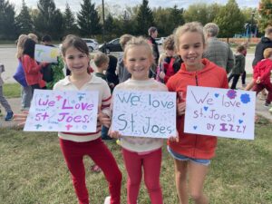 As part of our mission, St. Joseph Parish School gives back to the community through service. A few highlights from 2024-25: students filled Thanksgiving Baskets for the St. Vincent de Paul Food Pantry, created handmade blankets for patients at Children’s Hospital, and collected winter coats and clothing for Mr. Bob’s Under the Bridge. In addition, our Middle School Students conduct over 400 hours of community service including helping at the Balance Inc. Trunk or Treat, delivering food to food pantries, making sandwiches for St. Bens, and helping neighbors with yard work or other duties.